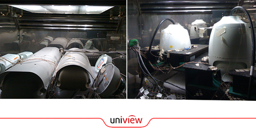 图:宇视球机接受太阳辐射模拟箱严苛测试(高温50℃)